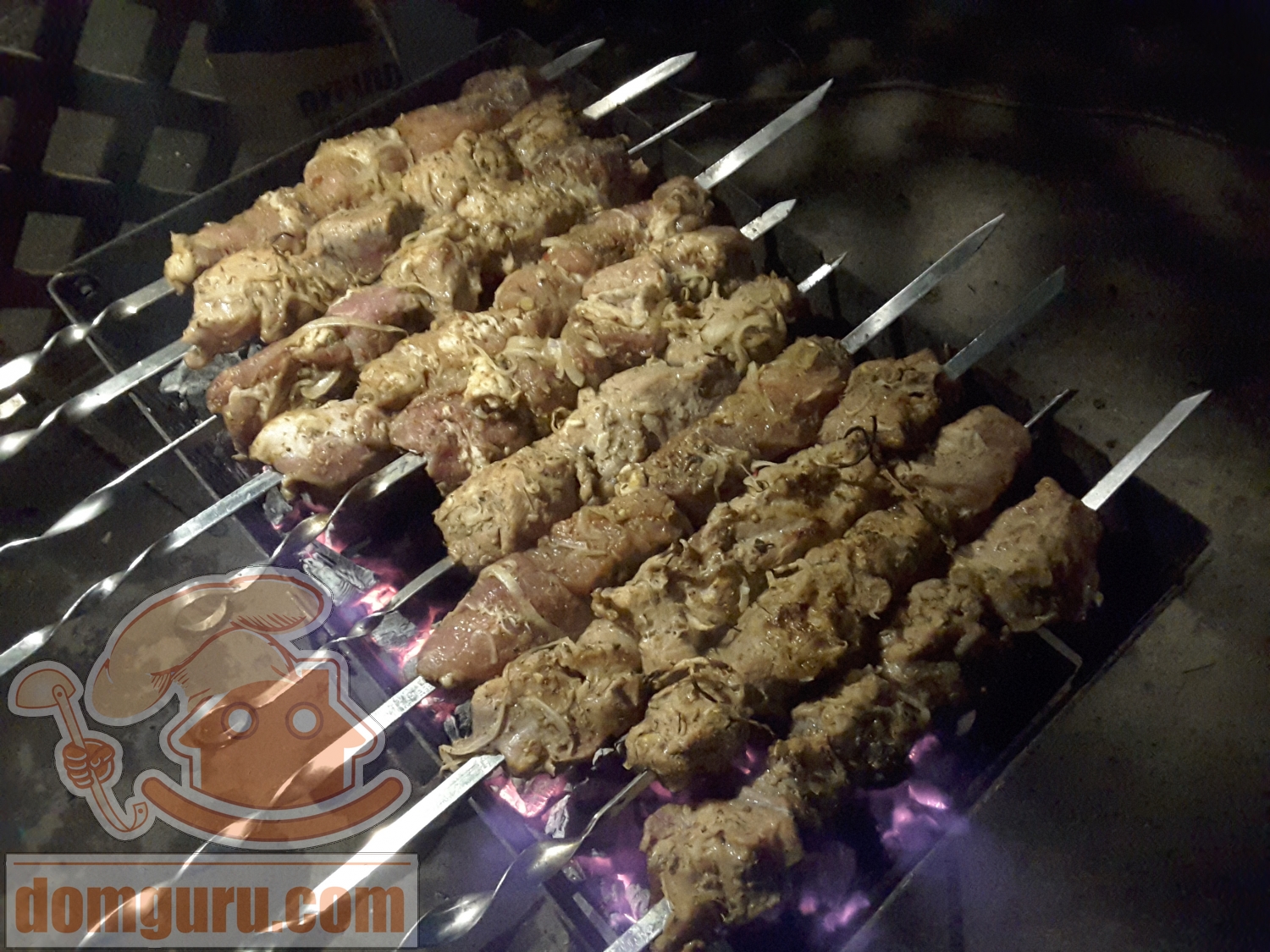 Приступайте к жарке на мангале. Жарьте шашлык до готовности, 15-20 минут.