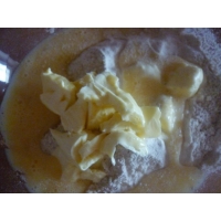 Все ингредиенты указаны на форму 22 см диаметром. Смешайте муку (я в этот раз взяла 100 г пшеничной и 25 г ржаной), соль,3 ст. л. сахара, 60 г размягченного масла, 1 яйцо (среднее, если крупное, то 1/2).