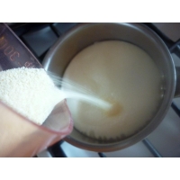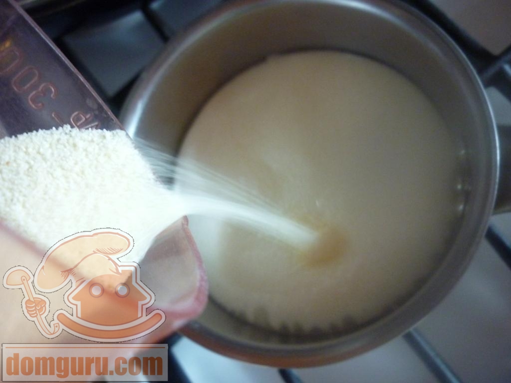 Сварите на молоке кашу из 40 г манной крупы. Остудите.