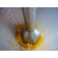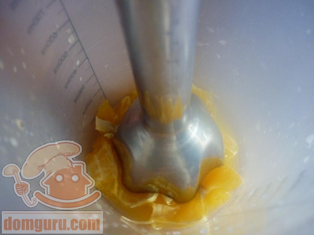 С апельсина снимите цедру. Очистите от белых перепонок и косточек. Взбейте блендером.