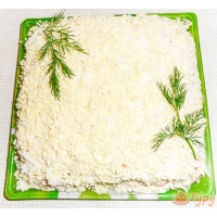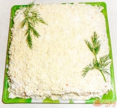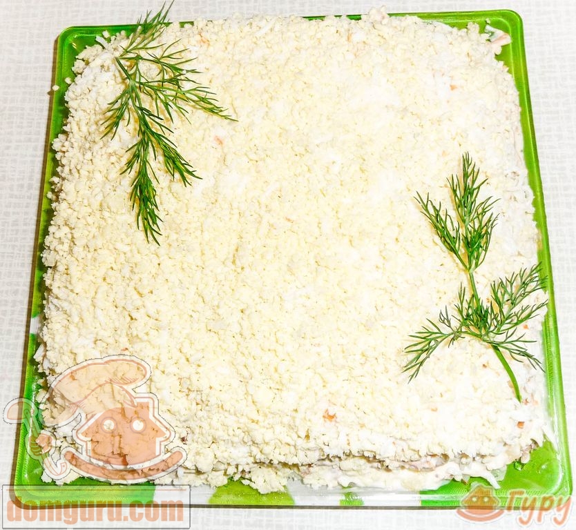 Украсьте "Мимозу" зеленью и подавайте к столу.