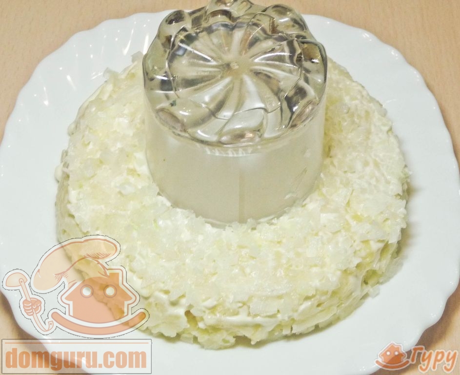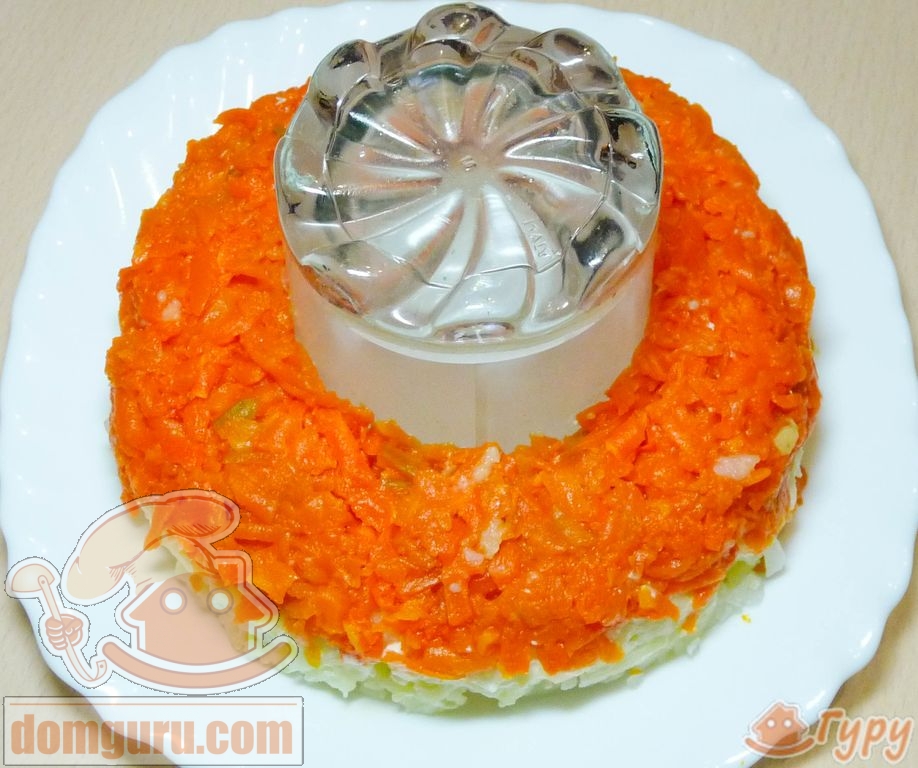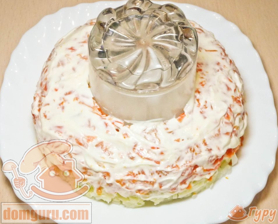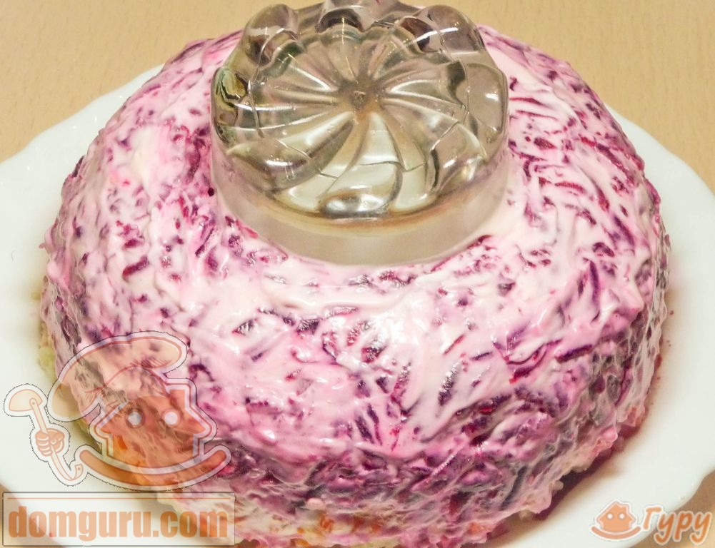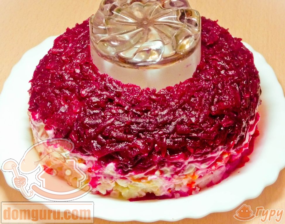 На портале «Домашний Гуру» вы увидите другие удачные рецепты слоёных салатов: «Мимозу»селёдку под шубой, Гнездо Глухаря.