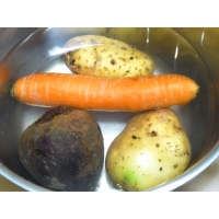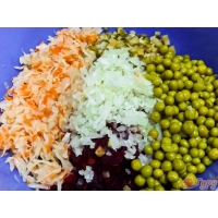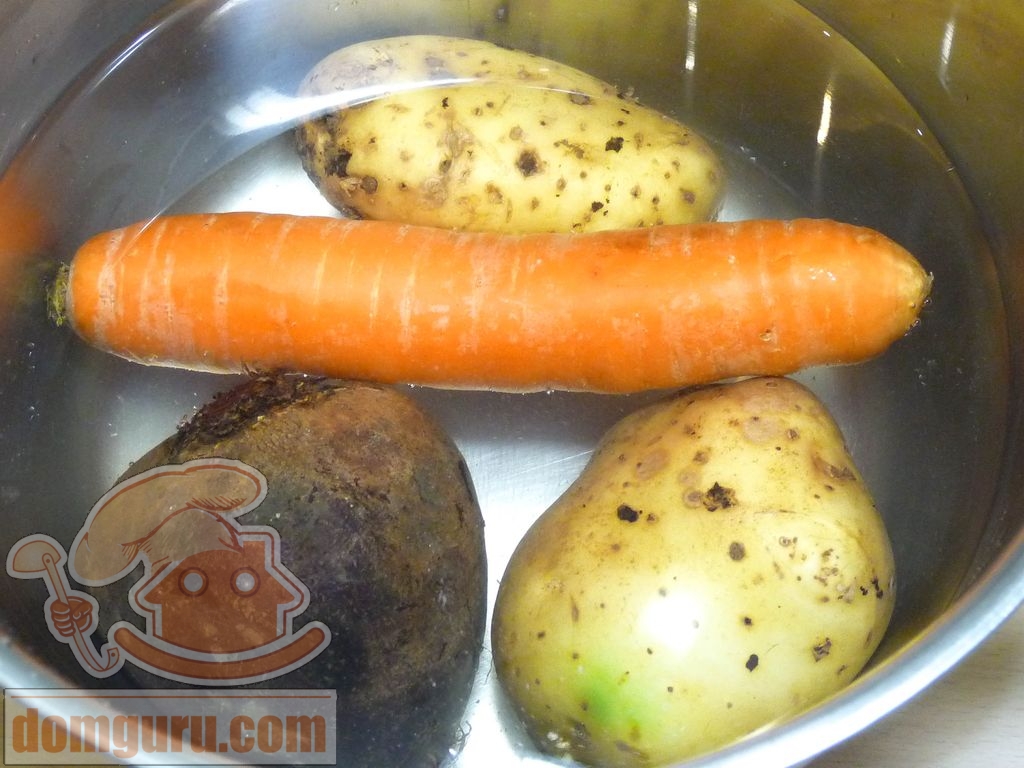 Свеклу, картофель и морковь отварите до готовности. Если капуста сильно солёная, то её необходимо промыть, затем мелко нашинковать.