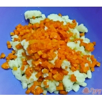 Чтобы все составляющие винегрета не приобрели свекольный цвет, свёклу отваривают и режут первой, а затем поливают маслом.