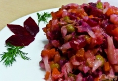 Ещё один интересный вариант – винегрет из морской капусты. Его рецепт почти не отличается от классического, но морская капуста смягчает вкус салата и добавляет в него необычные нотки.