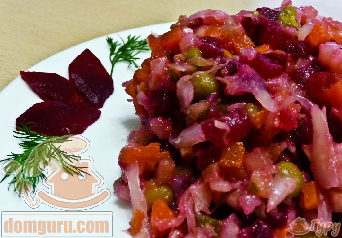 Точной пропорции ингредиентов для винегрета не существует, каждый, кто его готовит, выбирает их баланс по своему вкусу. Заправить его можно традиционным способом, а можно просто полить салат растительным маслом или майонезом.