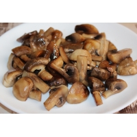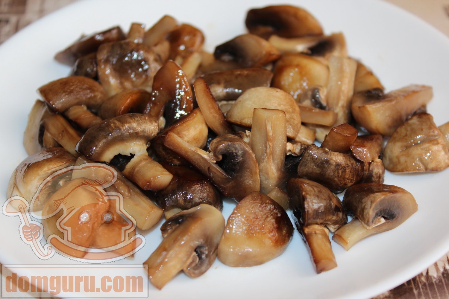 Для приготовления салата "Свекровь" грибы разрежьте на 4 части и обжарьте.