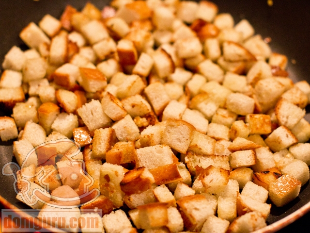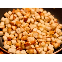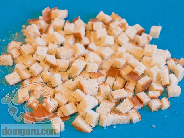 При подаче супа на стол, в каждую тарелку положите сухарики.