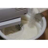 Взбивайте до состояния, когда сахар полностью растворится и полученная масса будет сохранять свою форму.