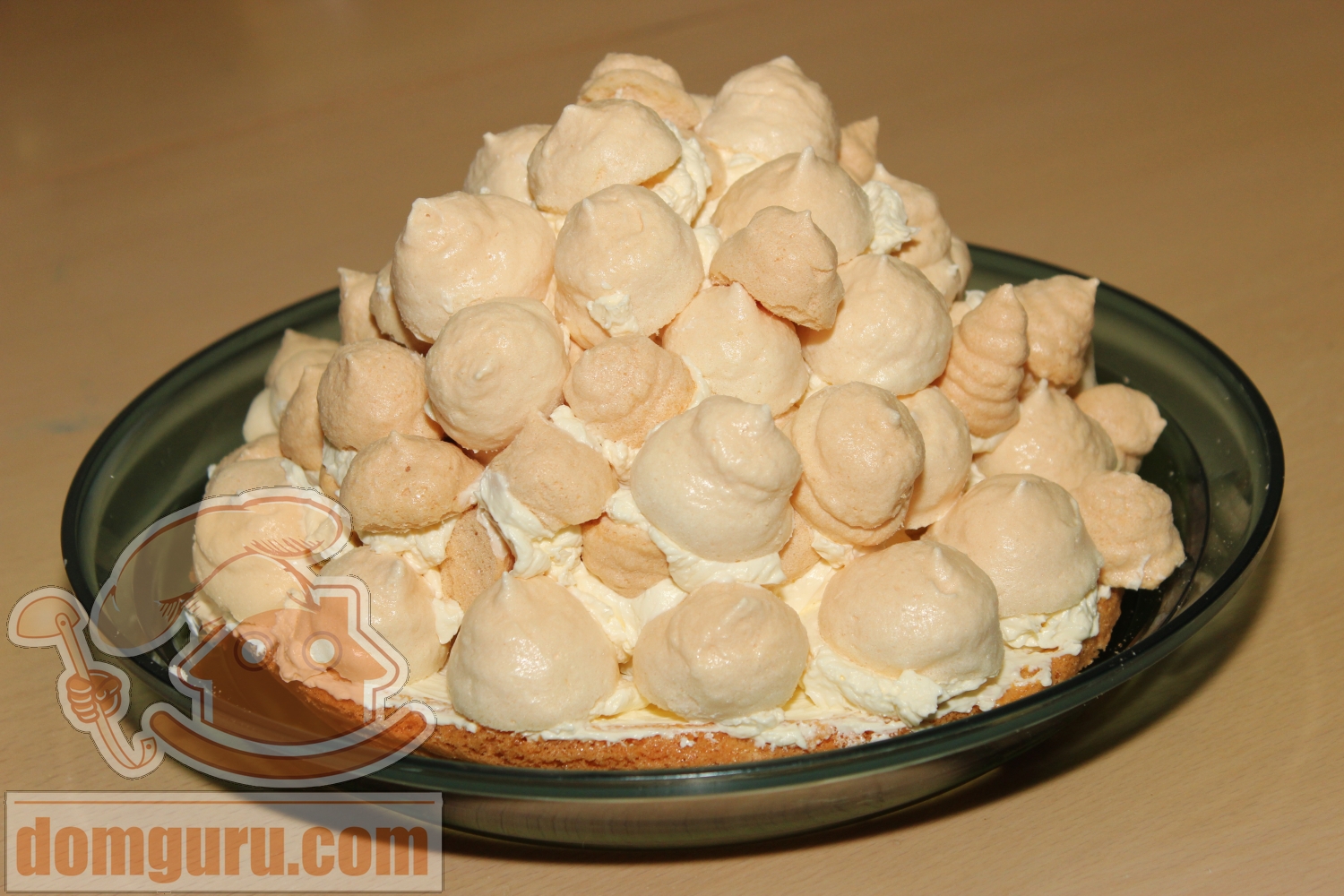 Укладывайте безе горкой, обильно смазывая их кремом.