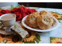 В татарской кухне также немало изделий из сладкого теста. Знаменитый чак-чак – это не просто разновидность десерта, подаваемая к чаю, а рецепт свадебного блюда. Помимо этого среди сладких угощений можно выделить чельпек, бал-май (масло с медом), пахлаву.
