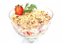 Нередко фрукты можно встретить в составе многочисленных салатов. Они способны подчеркнуть вкус других ингредиентов. Частым салатным "гостем" является яблоко. Оно прекрасно сочетается и с мясом, и с птицей, и с другими овощами и фруктами. Попробуйте приготовить салат "Бельгийский" или винегрет с яблоком. Не меньшей популярностью пользуются апельсины. Их можно встретить в рецепте приготовления фруктового салата "Венера" или во фруктовом салате со сладким перцем.