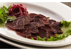 Вяленая говядина – мясная закуска, для приготовления которой, как правило, используется говяжья вырезка. Обычно мясо выдерживается в специальном рассоле, а затем вывешивается в темное, сухое проветриваемое помещение, где постоянно поддерживается температура в районе 10 градусов Цельсия. Продукт готов к употреблению через 15 суток.